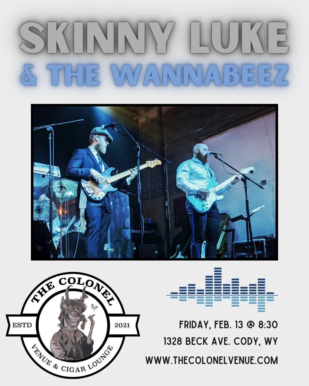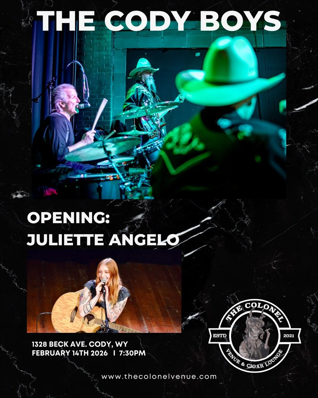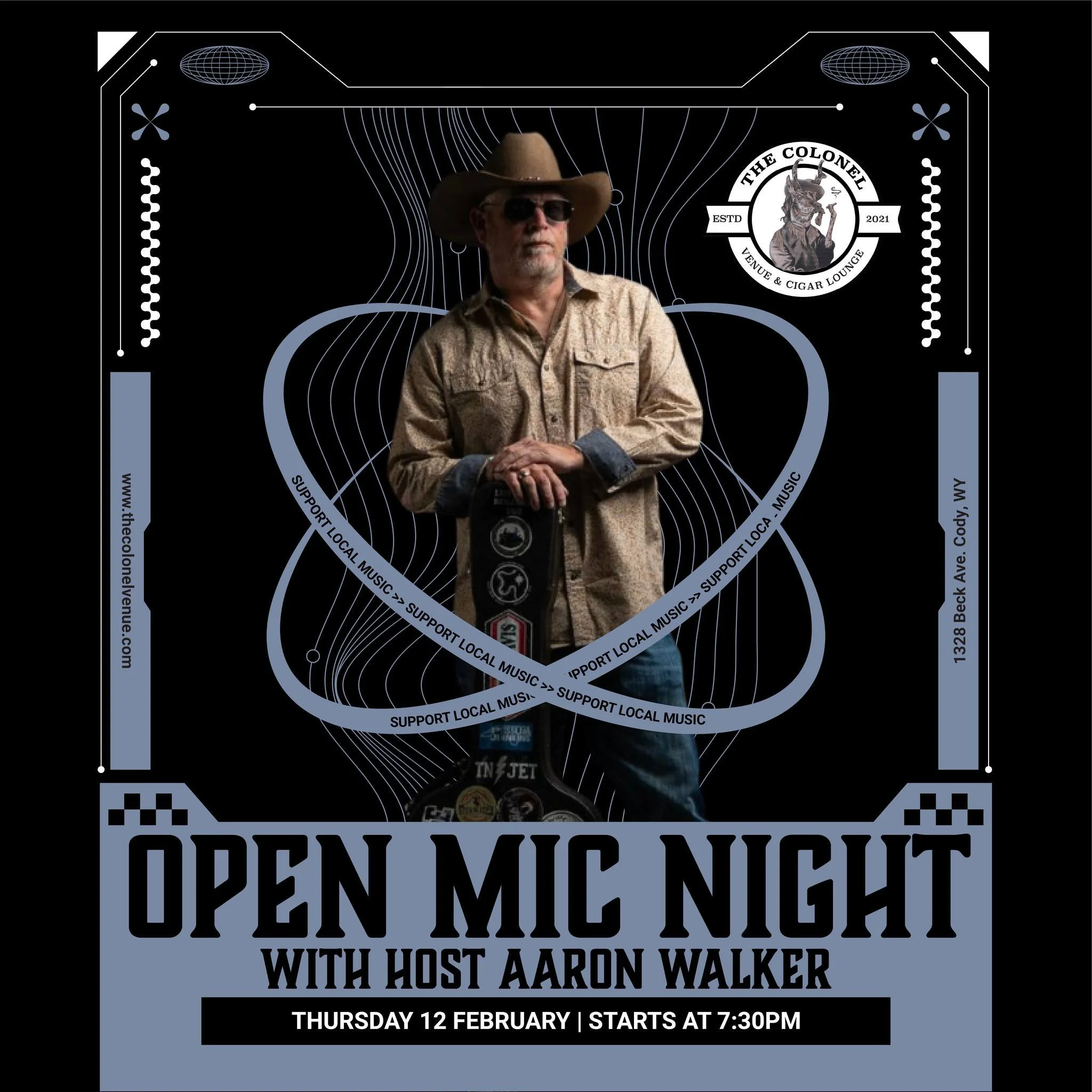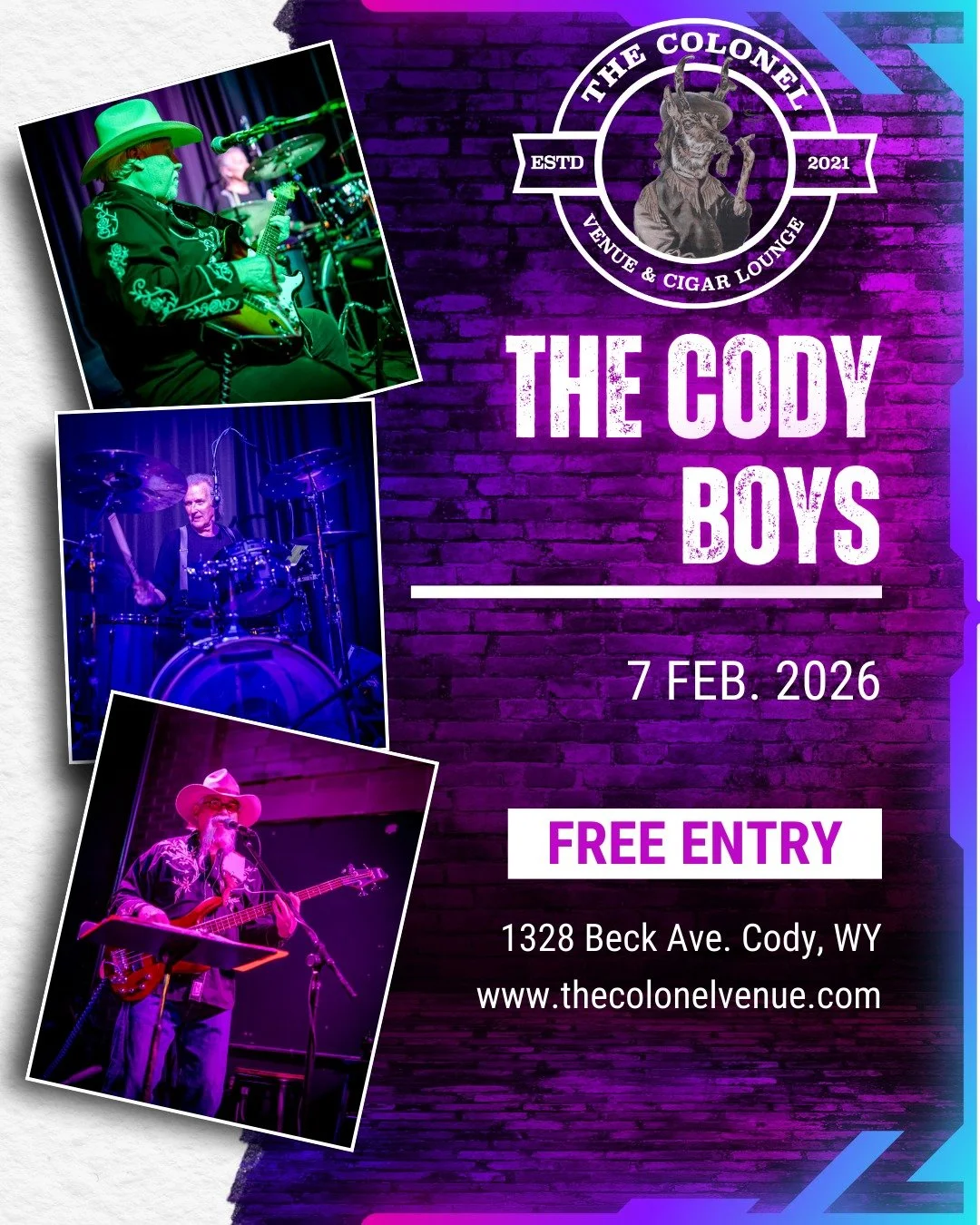 The Colonel is a venue, bar and cigar lounge focused on bringing great music to Cody, WY.