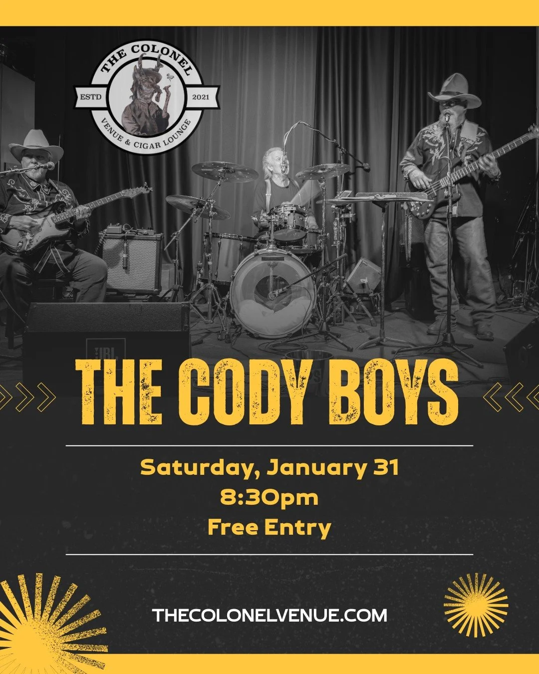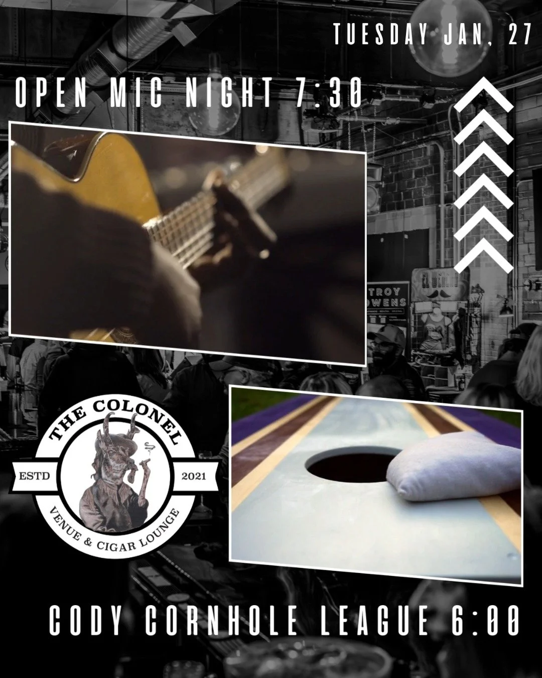 The Colonel is a venue, bar and cigar lounge focused on bringing great music to Cody, WY.